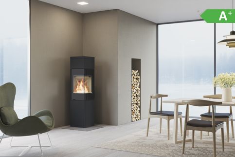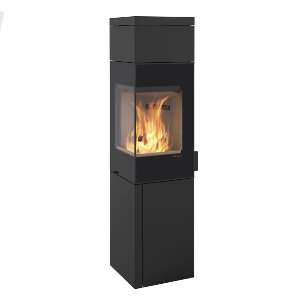 Nordpeis Quadro 3 Exclusive heeft een modern en stijlvol design. De grote buitenruiten maken het model Exclusive bijzonder elegant. De kachel heeft een comfortabele grip en een glad, gepoedercoat oppervlak. Uitgerust met glas aan twee zijden, biedt de kachel een bijzonder goed zicht op de vlammen. Quadro Exclusive kan tegen een muur of in een hoek worden geplaatst. Het model is verkrijgbaar met twee verschillende sokkels en bevat een opzetstuk voor warmteopslag of om de schoorsteen te verbergen.