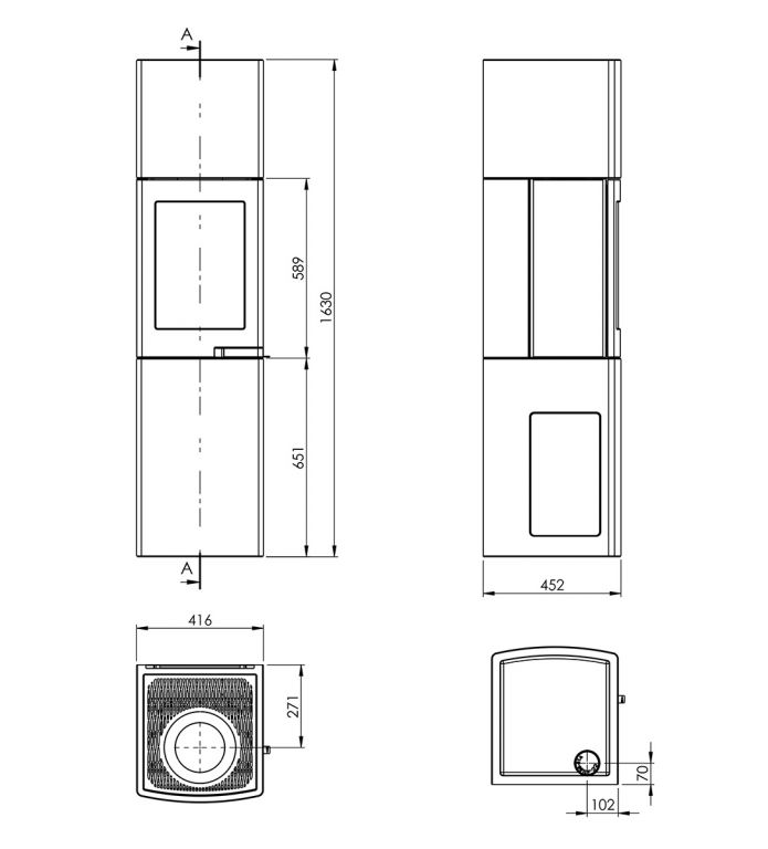 Nordpeis Lisboa is een smalle haard met een geïntegreerde brandmuur die zeer weinig vloeroppervlak in beslag neemt. Lisboa heeft aan drie zijden glas waardoor je goed zicht hebt op de vlammen.
